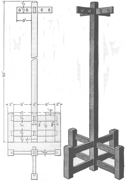 This is a very useful and attractive piece of mission furniture and is also very easy to construct. This hall tree, in the Mission style, is great for holding hats and coats.