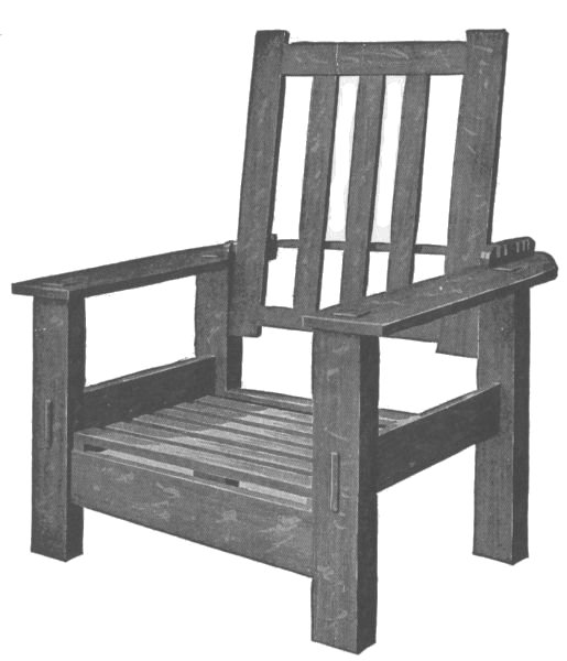 A comfortable Morris chair in the Mission/Craftsman style. This chair is solid and reclinable. Add some cushions to the finished design and you’ll have a comfortable chair to fall asleep in each night.