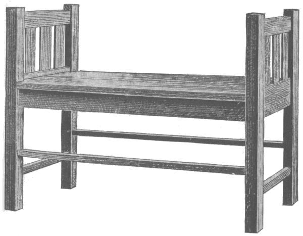 A simple design for a hall or window seat is shown in the accompanying plans. Anyone who has a few sharp tools, and is at all handy with them, can make this useful and attractive piece of furniture in a few spare hours.